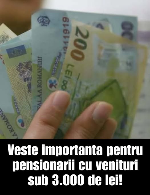 Citește mai departeVeste uriașă pentru pensionarii cu venituri sub 3.000 de lei!